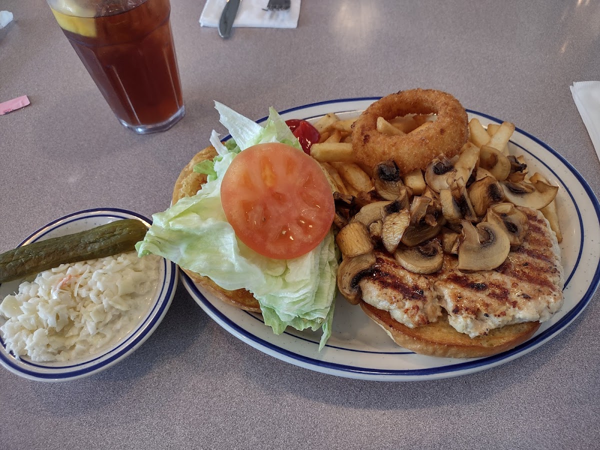 Nostalgic & reminiscent of a bygone era where families gathered at dinners. The food was excellent. It's not greasy & not overly seasoned. It's a quiet corner, and you'd have to look for it to know it's there. In the picture are the 2 eggs cooked anyway with corned beef and potato hash; deluxe cheeseburger with onion rings. Delicious and will add it to my go-to places for lunch.
